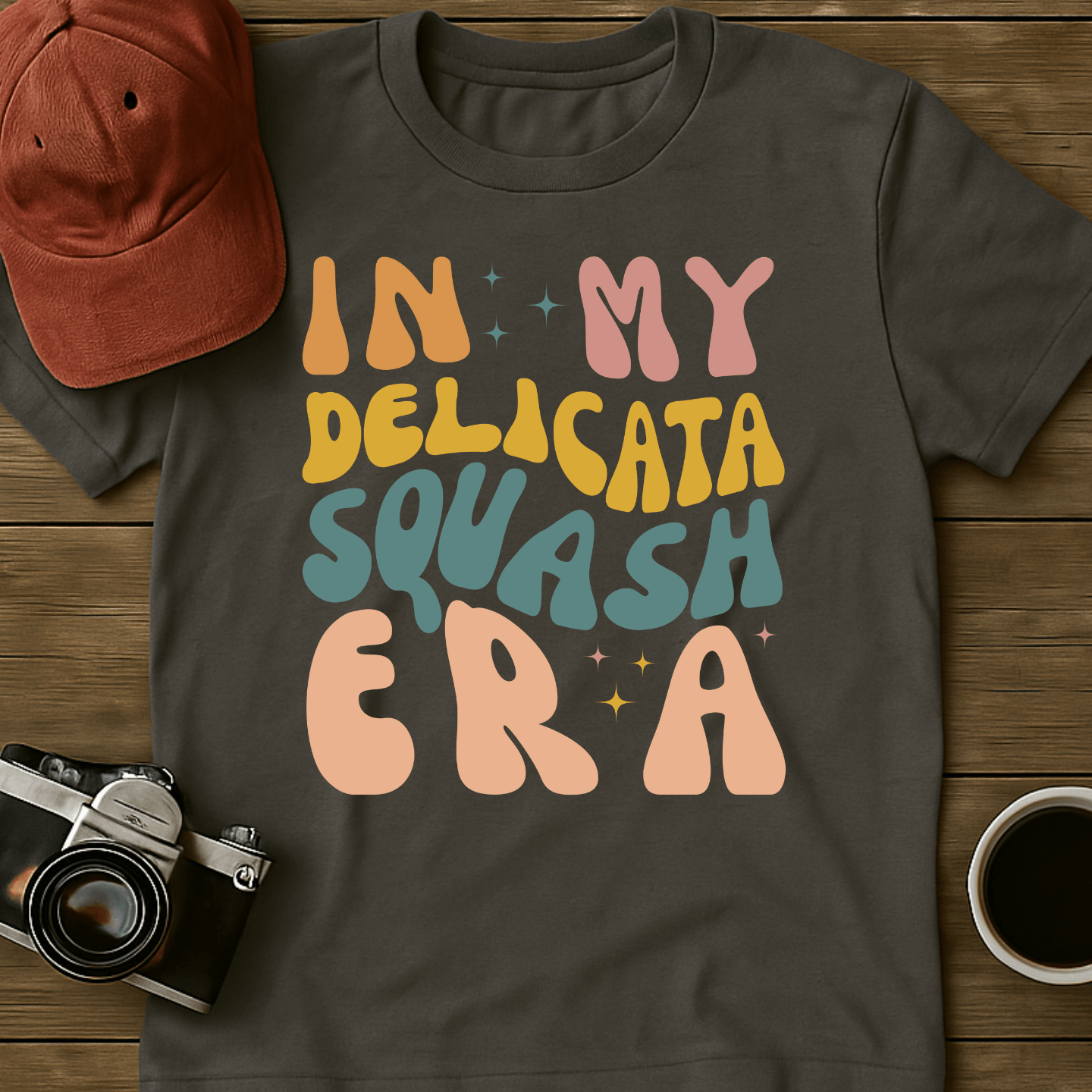 "In My Delicata Squash Era T-Shirt" is a Rooted & Worn original design printed on a premium "softstyle" tee celebrating good food and community.