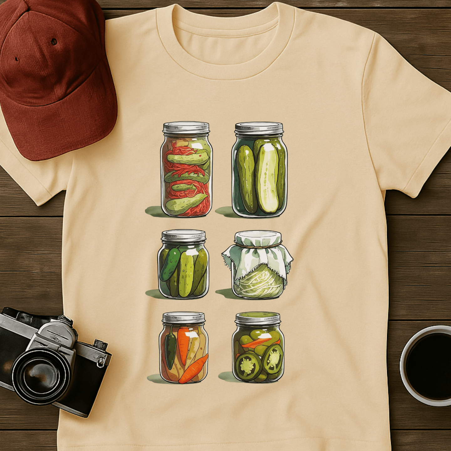 "Pickle Jars II T-Shirt" is a Rooted & Worn original design printed on a premium "softstyle" tee celebrating the wonderful memories of good food and old-fashioned items while keeping them alive for ourselves and our children.